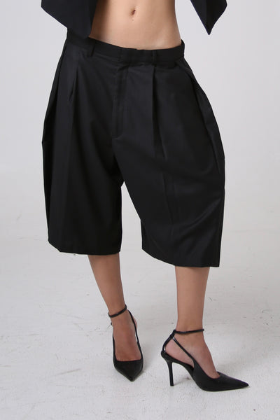 BERMUDAS FIT OVERSIZED. DETALLE MADRE EN COSTADOS. BOLSAS LATERALES. CIERRE FRONTAL. PUEDES USARLAS A LA CINTURA O CADERA. TIRO LARGO