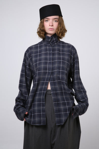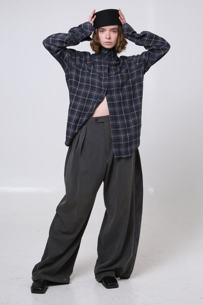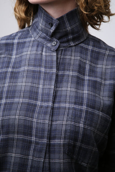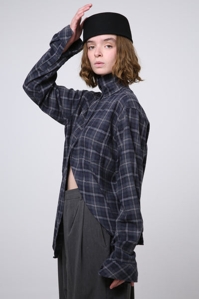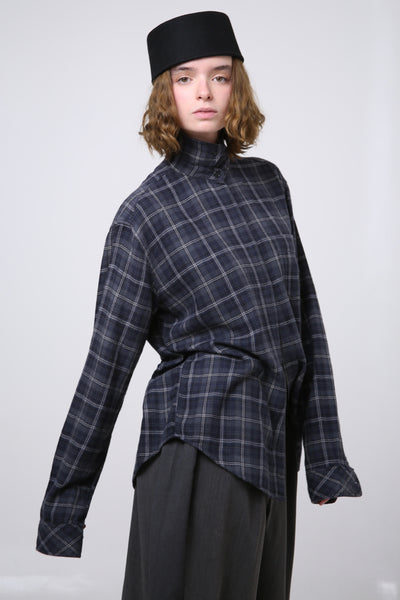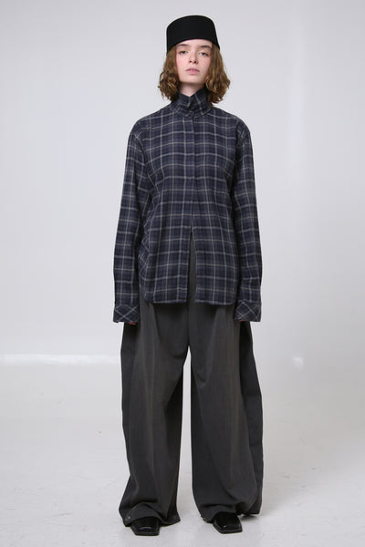 CAMISA OVERSIZED. CIERRE FRONTAL BOTONES OCULTOS. CUELLO ALTO