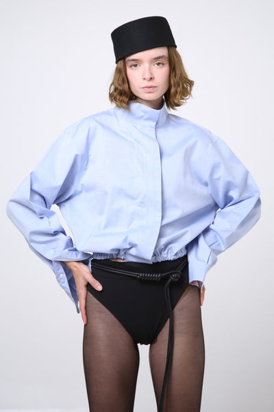 CAMISA MANGA LARGA , CIERRE FRONTAL CON BOTONES OCULTOS. RESORTE EN PARTE BAJA.