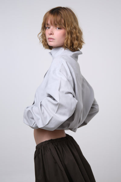 CAMISA MANGA LARGA , CIERRE FRONTAL CON BOTONES OCULTOS. RESORTE EN PARTE BAJA.