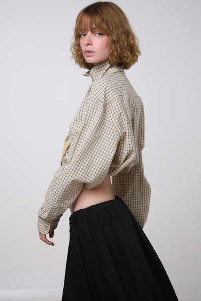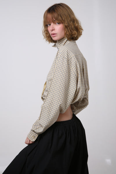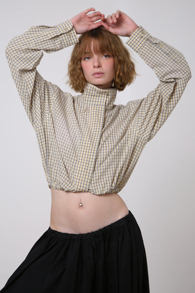 CAMISA MANGA LARGA , CIERRE FRONTAL CON BOTONES OCULTOS. RESORTE EN PARTE BAJA. PUÑOS DE MANGA PARA MANCUERNA